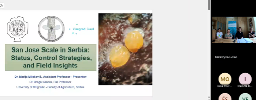 During the first day of the visit, which was held in the main building of HUN-REN for Agricultural Research in Martonvásár, issues related to the ecology of San José scale were discussed. The meeting began with a presentation by one of the local organizers, Dr. Éva Szita, focusing on global warming and climate change related shifts in phenological and distribution patterns of SJS in Europe, mainly int he territories of Visegrad 4 countries.
